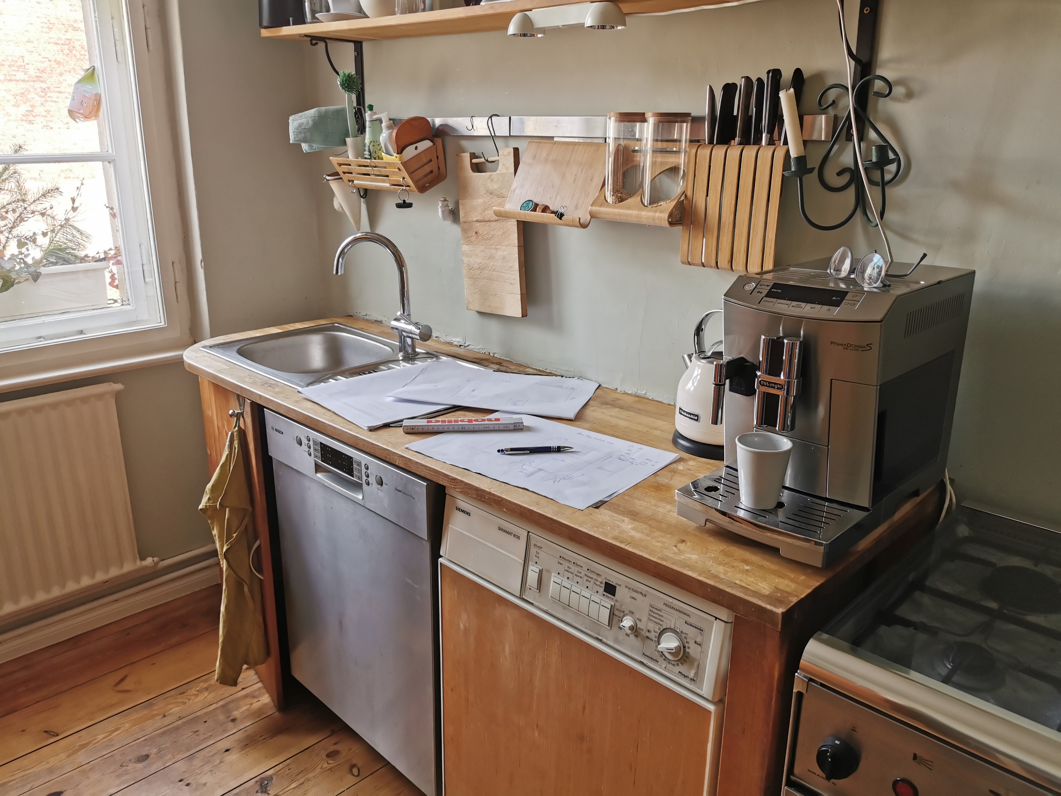 die Arbeitsplatte über dem Heizkörper wurde bis an das Fester angepasst