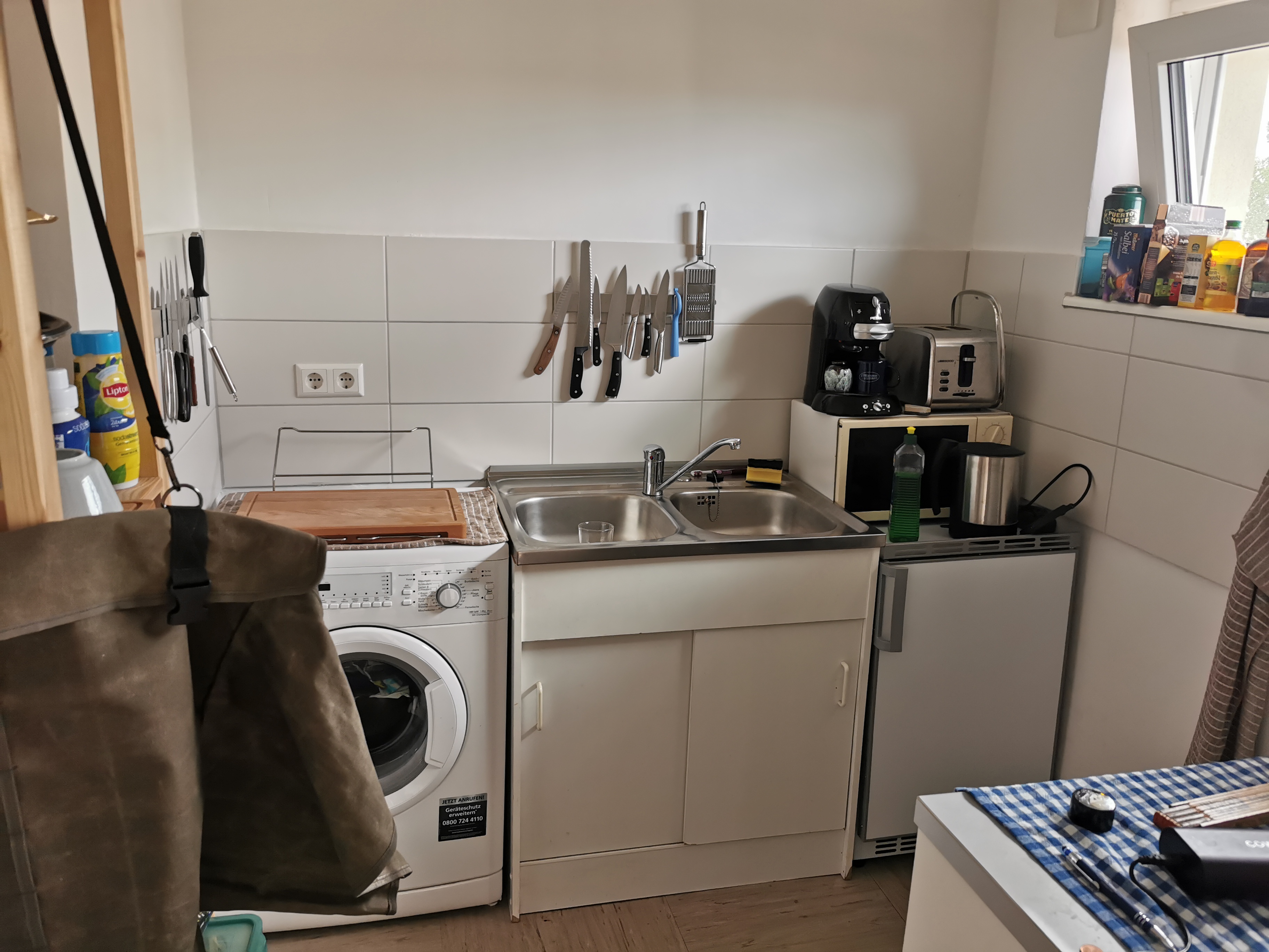 alles da: Spüle, Geschirrspüler, Kochfeld, Mikrowelle, Kühlschrank auf 2.17 Meter