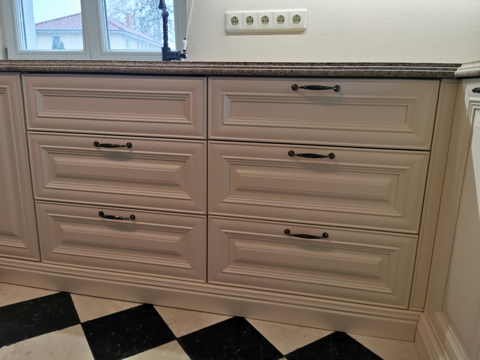 die Unterschränke im Bereich des Einganges wurden in 45 er Tiefe gefertigt