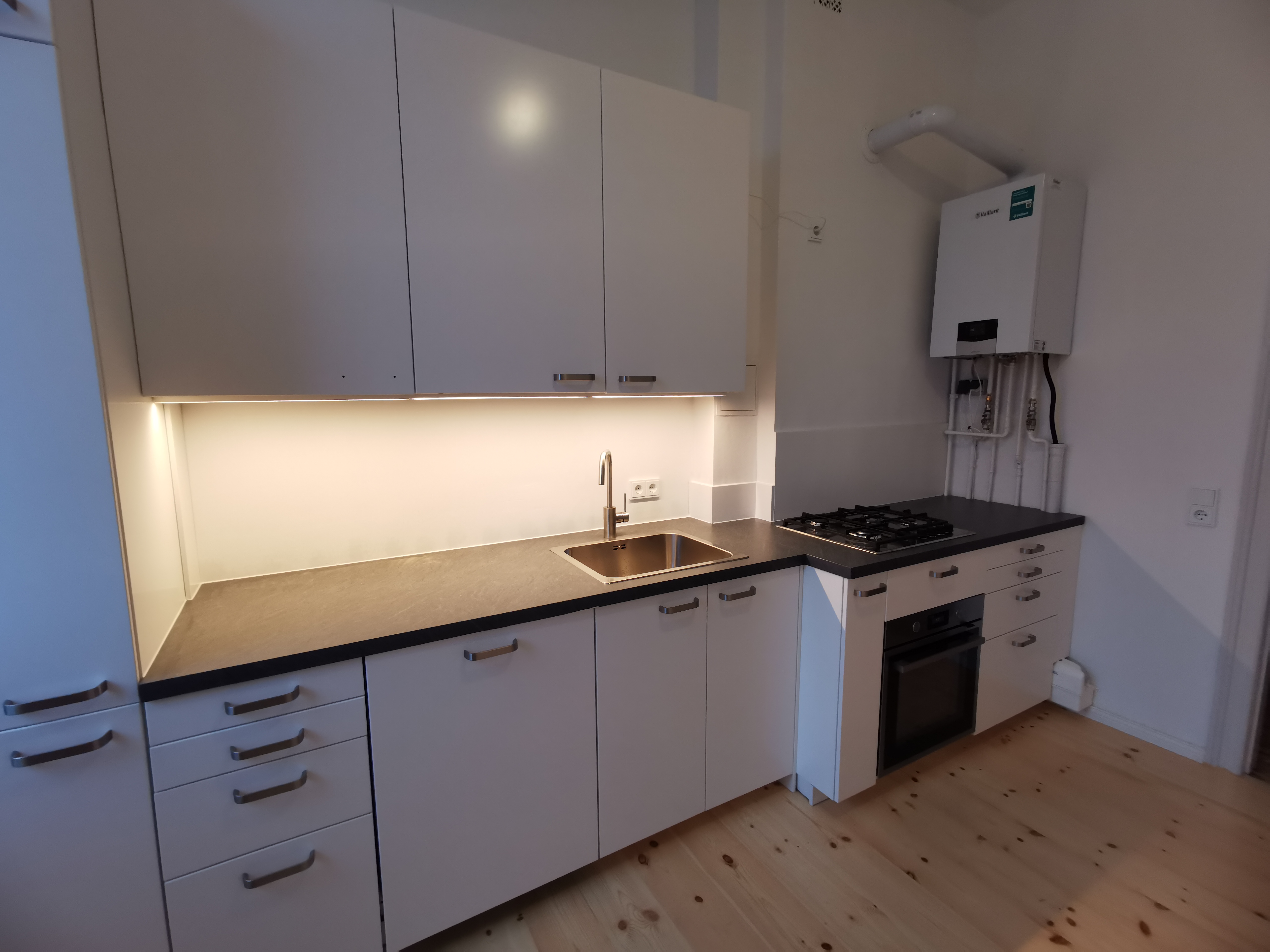 kleine IKEA Küche in Berlin - Mitte mit in der Tiefe gekürzten Unterschränken im