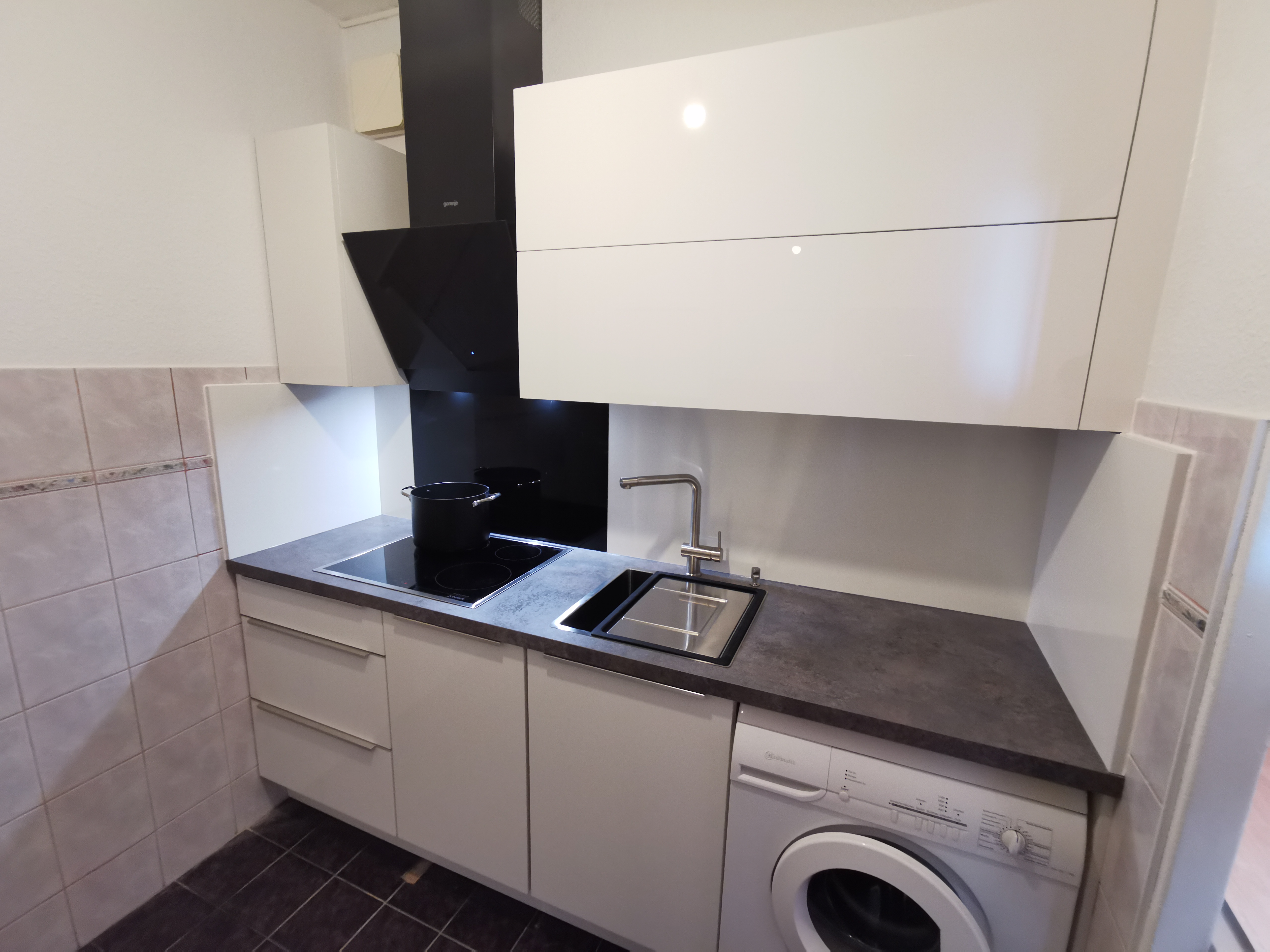 alles da: Spüle, Geschirrspüler, Kochfeld, Mikrowelle, Kühlschrank auf 2.17 Meter