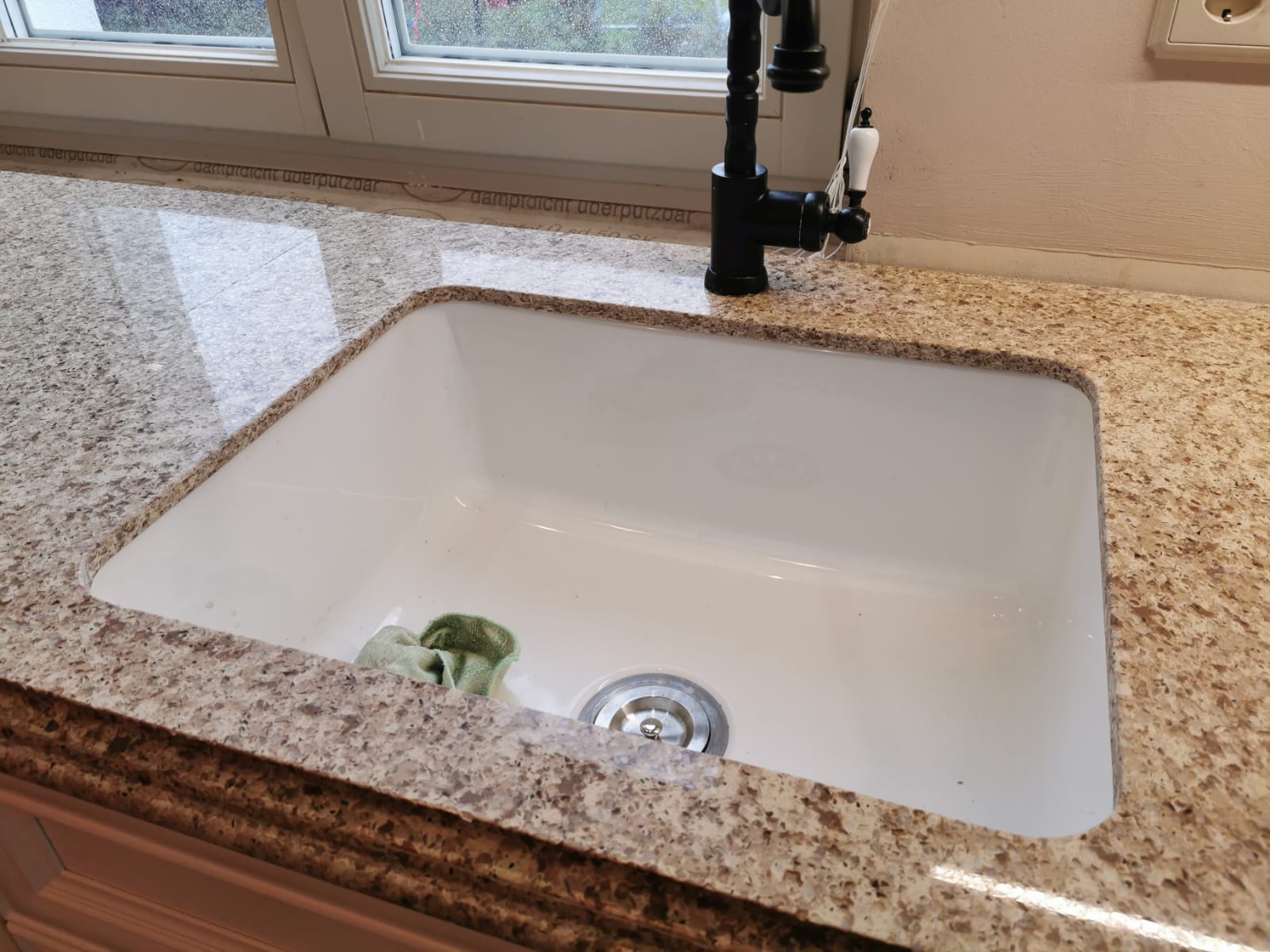 Besonderheit: Arbeitsplatte massiv Grant mit untergebauter Spüle