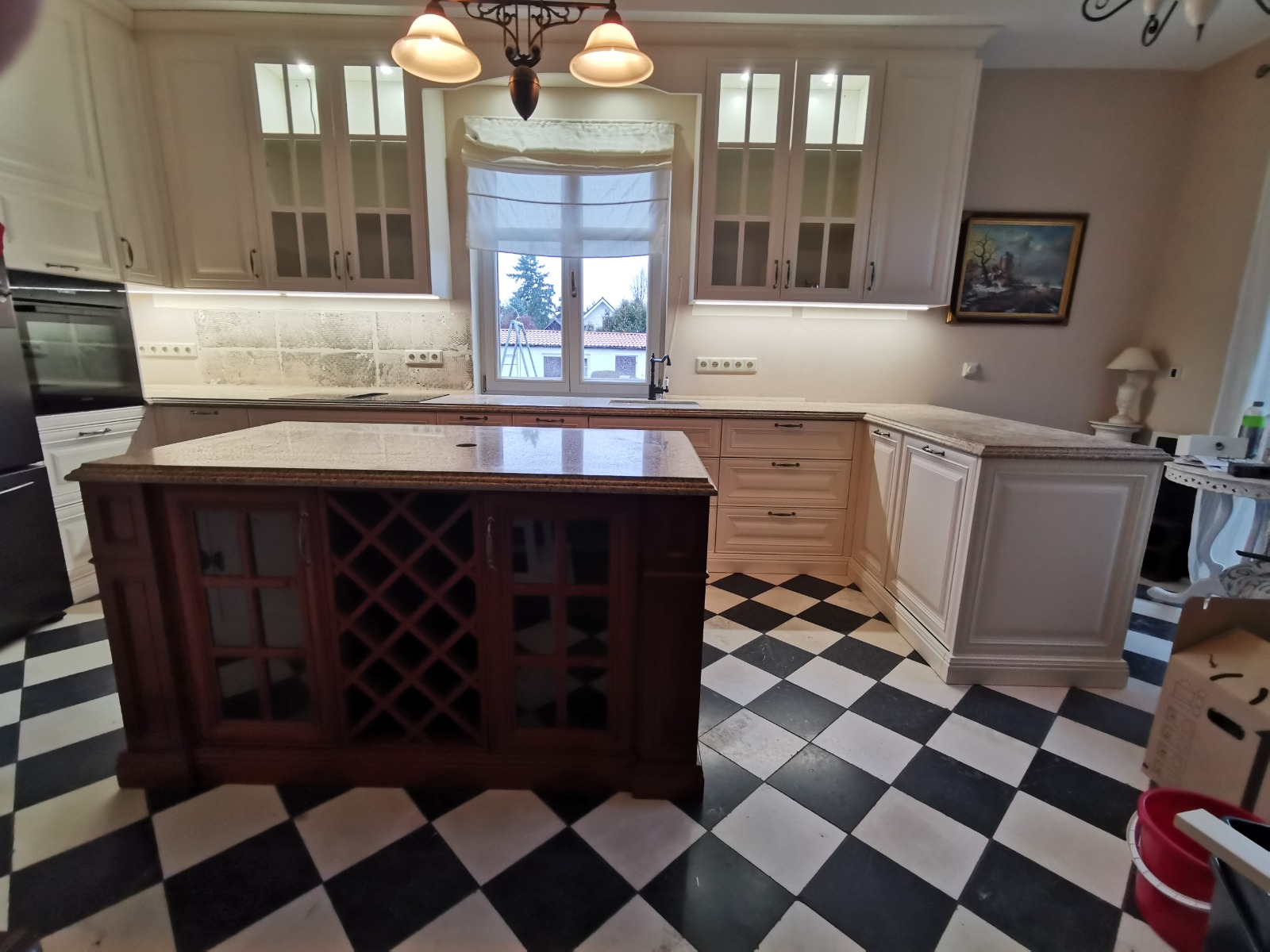 die Arbeitsplatte über dem Heizkörper wurde bis an das Fester angepasst