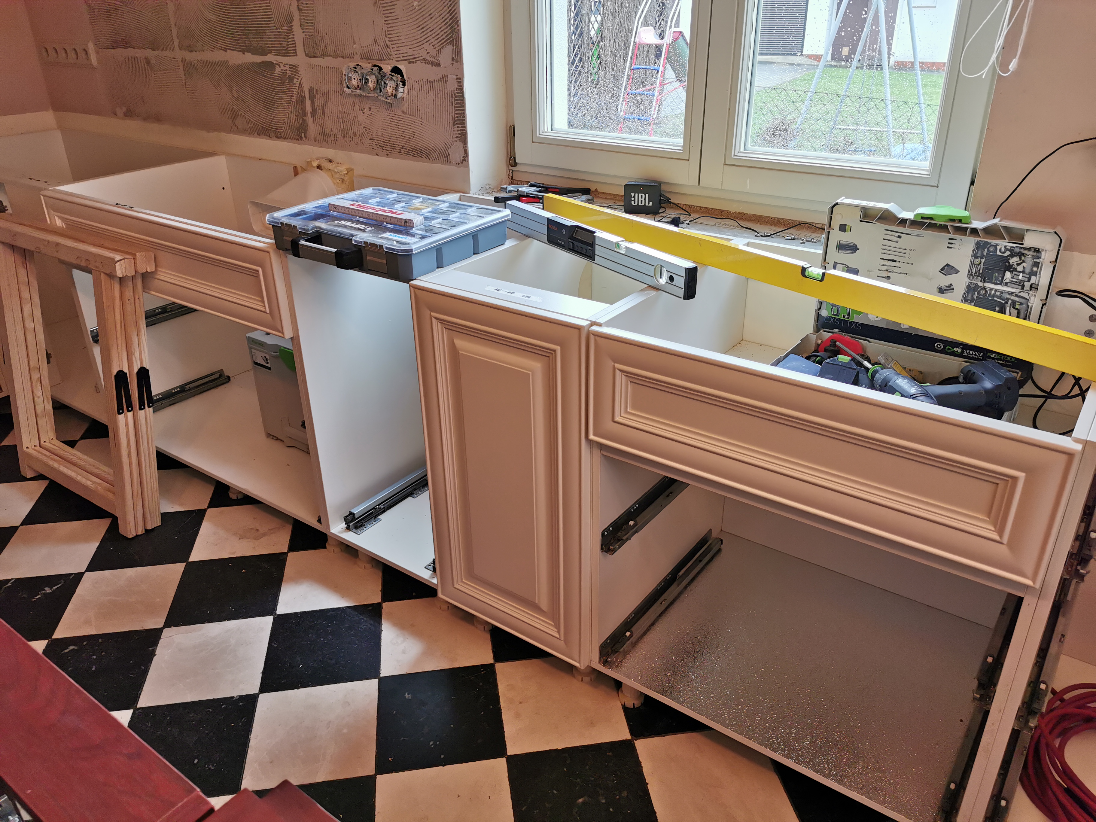 der Ofen wurde unten platziert, der 20 er Schubkasten oben nur 45er Tiefe